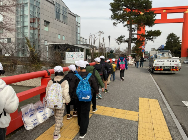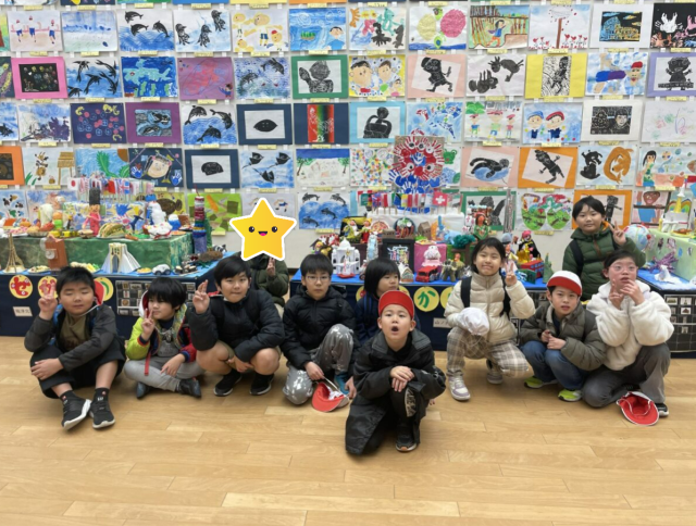 自分の作品を見つけて「あった!」と嬉しそうな子どもたちです。