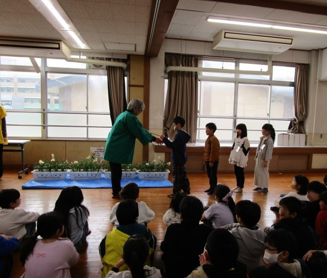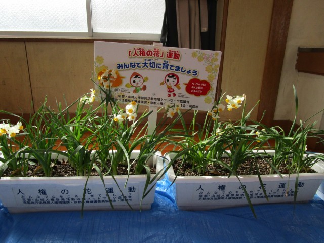 「人権の花」運動で植えた水仙の花がきれいに咲き、
