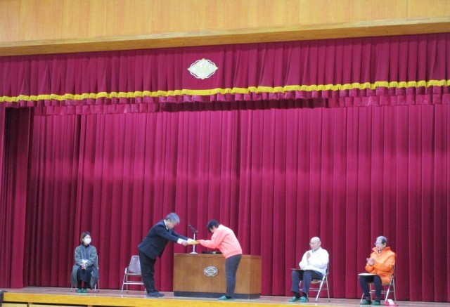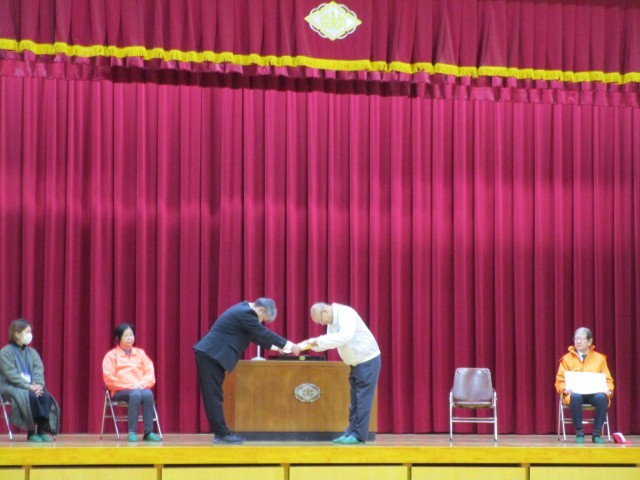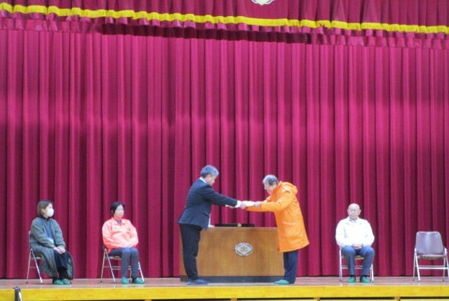 感謝状と記念品(児童会作成のカード)をお渡ししました。