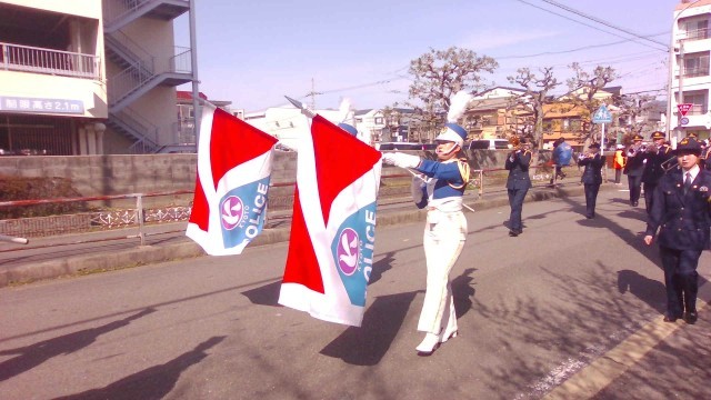 京都府警音楽隊・カラーガード隊・平安騎馬隊・四条中学校吹奏楽部を先頭に、パレードを行いました。