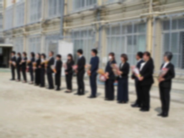 去られる教職員の皆さん、今日まで山ノ内小学校への
