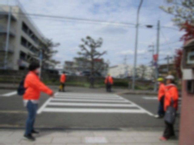 実際に校門前の横断歩道を渡る練習をしました。