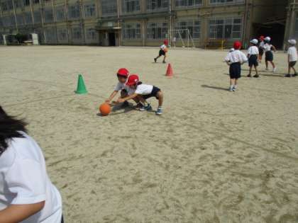 体育科の学習で「ころがしドッジボール」をしました。