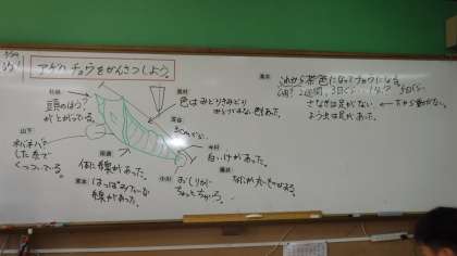 「体を糸みたいなので動かないようにしているんだ!」など観察したことをみんなで伝え合いました。