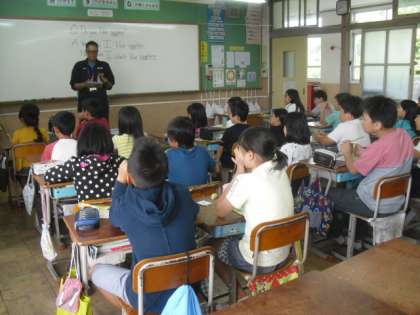 外国語活動が始まって2か月がたちました。13日はALTのファリス・マリア先生も来てくださり,「I like 〜.」や「I don't like〜.」を教えていただきました。初めて出会う単語があったり,いつも聞いているようでちがう発音をする単語があったり,マリア先生からたくさんのことを教えていただきました。ゲームやチャンツ(歌)も楽しそうに取り組んでいます。習った英語を積極的に使おうと一生懸命コミュニケーションする姿も見られました。これからも,どんどん英語を好きになってくれたらなと思います。