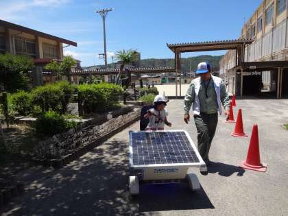 日新電機の方にお越しいただいて,理科教室を開催しました。室内では,電池に電気を貯める実験をしたり,発電などのお話を聞かせていただいたりしました。屋外では,ソーラーカーの運転をしたり,ソーラーキャップをかぶって実験をしたりしました。貴重な体験ができて,子どもたちはとても喜んでいました。中には,「将来ソーラーカーを作りたい!」と話している子もおり,学習を通して多くの子がソーラーに興味をもった様子でした。