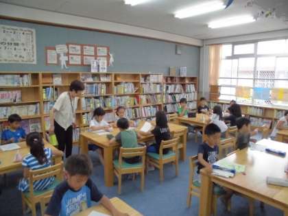 学校司書の小河先生から,夏休みに向けて,読書感想文の書き方の指導を行っていただいています。