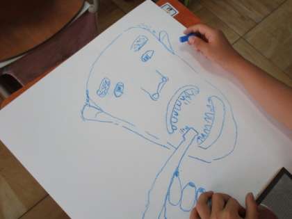 みんな,集中して描いたので,歯みがきをしている様子が上手に表現できました。コンテで線描し,クレパスで塗っていきます。仕上がりが楽しみです。