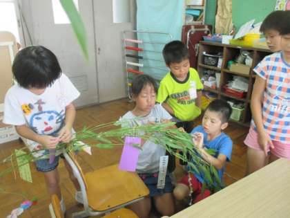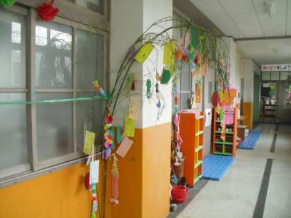 昨日,自分のお願い事を発表するとともに自分たちで飾りつけをしました。みんなの願い事がかなうといいですね。