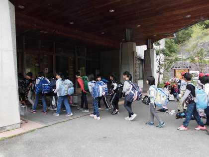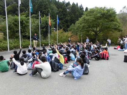 入所式では,みんな真剣に話を聞いており,山の家の先生方にもとても褒めていただきました!