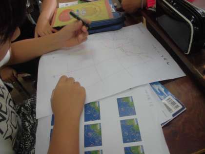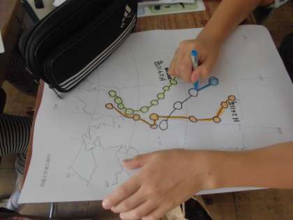 台風が近づいたときの気象情報を子どもたちに渡し,