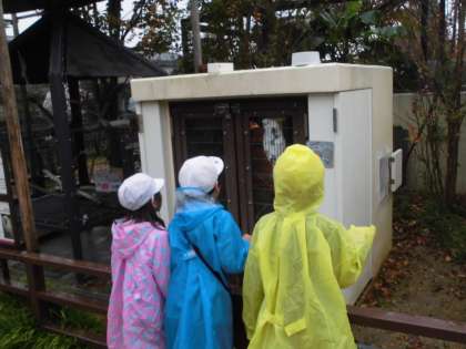 本日,楽しみにしていた京都市動物園への遠足に行ってきました。天気はあいにくの雨でしたが,子どもたちは楽しくオリエンテーションで園内を回りました。レッサーパンダやツシマヤマネコを見ると「かわいい!」とよろこんでいました。