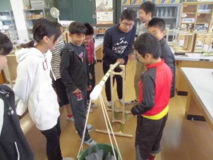なにやらへんてこな道具をつかって,みんなで体験しました。