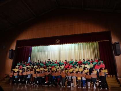 本番では,みんなの一生懸命な姿が見られました。体育館に4年生のきれいな歌声が響いていました。他の学年の人たちからは,「画用紙がそろっていてとてもきれいでした。」「歌声が大きくてすてきでした。」「ごんの気持ちが伝わってきて感動しました。」という感想をもらいました。みんなの発表を通して,ごんぎつねの物語のよさがたくさんの人に伝わっていましたよ。