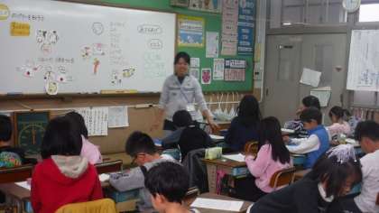 いつもは給食室で会う,栄養教諭の小林先生が教室にやってきてくれました。