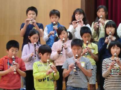 リコーダー・リズム・合唱の音楽で学習したことを発表しました。リコーダー演奏では,しっとりとリコーダーで2部合奏し,リズムはノリノリでボディーパーカッションで,リズムを楽しみました。そして合唱で,『友達』を歌いました。とても心に残る素敵な発表が出来ました。
