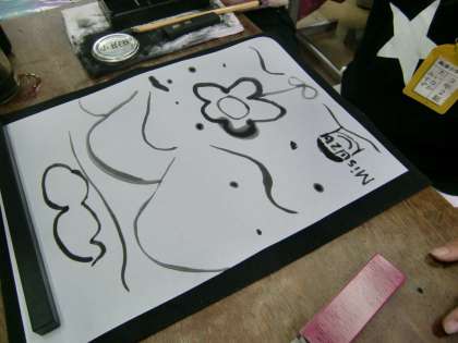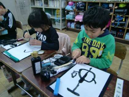 「これが,墨のにおいやな〜!」「すれてきた証拠や!」等,墨をすることから始める習字の時間も新鮮でした。