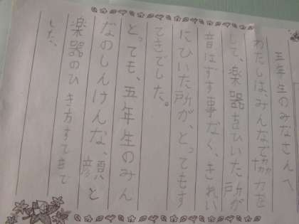 学習発表会後,子ども一人ひとりが,印象に残った発表に対し,感想を書きました。