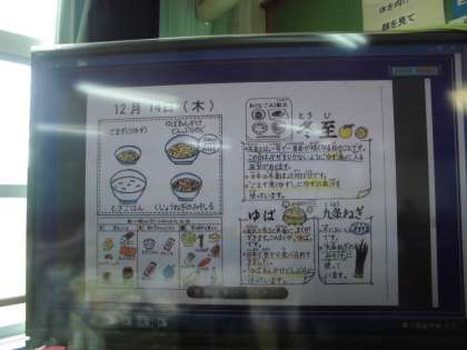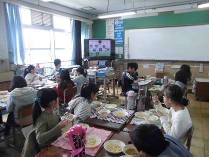 給食時間は和(なごみ)献立の紹介のビデオを見て,ゆばのクイズに答えたり,大豆の世界にひたる時間になりました。