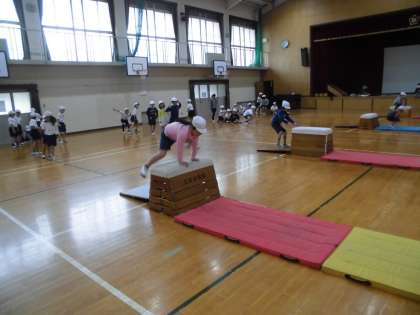 去年より高い段を跳べるように手をつく位置や踏切のタイミングを工夫しています。