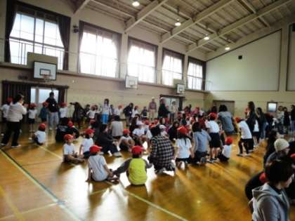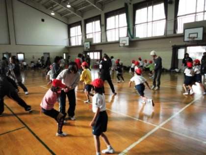 フープ送りをしたり,しっぽとりゲームをしたり,楽しいひとときを過ごすことができました。