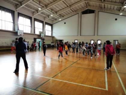 楽しい話を聞いたり,ゲームをしたり,体育館でのびのびと活動しました。
