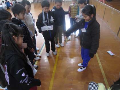 4年生は今,総合的な学習の時間で「心を伝え合おう」というテーマでお隣の国の韓国・朝鮮について学習をしています。この前の木曜日に,朝鮮第二初級学校と交流会を行いました。韓国・朝鮮の伝統的な遊びのコマ回しや,チェギチャギという足でおもりを蹴るゲームなどを行いました。そして,梅津小学校からはみさきの家でもみんなで遊んだ,「もうじゅうがりゲーム」,「木こりとリス」などのゲームを準備しみんなで楽しく交流を行いました。子どもたちからは「ドキドキしたけど仲良くなれてうれしかったよ。」「色々な遊びを教えてもらえてうれしかったよ。」と,短い時間でしたが,よい交流が行えた様子がうかがえました。