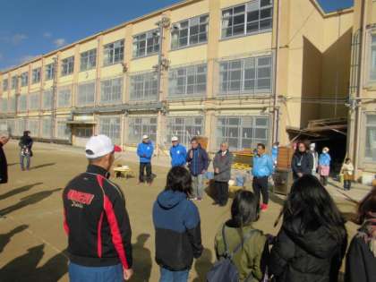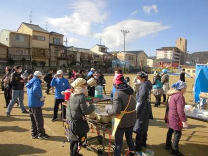 梅津小学校運動場で餅つき大会が開催されました。