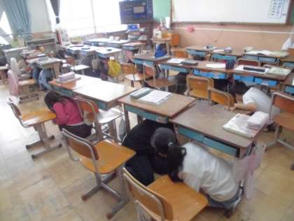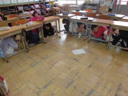 学校では,訓練音に合わせて,簡易避難訓練を行いました。