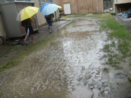 ところが,その時に通る通路が未舗装だったため,雨の日はぬかるんでいて歩きにくい状態でした。