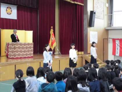 学校長からは「あいさつ」「返事」「安全に気をつける」という話がありました。