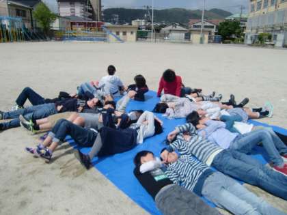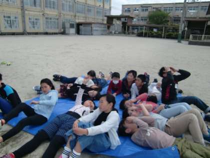観察をする前に,運動場に,シートを敷きみんなで空を見上げました。空を見上げると,雲の様子がよく分かります。「お〜雲めっちゃ動いてるやん!」「小さい雲の方が動きが速くない?」等,いい呟きがあちらこちらで聞こえてきます!いいですぜ,5年生!楽しみながら,天気を知ろう!そして,学習の最後には,天気が読めるようになろう!