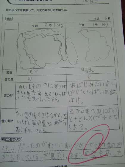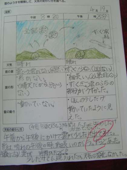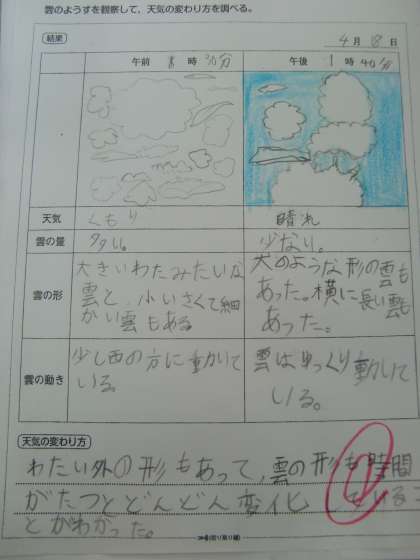 工夫のある観察カードが多くありました。さすが5年生だなと思いました。また,1日のまとめがよくできていました。