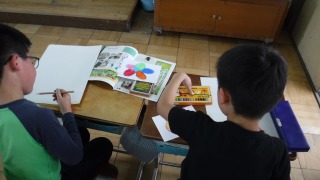 似顔絵の次は,まぼろしの花です。実際にはないお花を想像して描いていきます。お花だけではなく,種から考えます。「こんな種だからこんな花が咲くんじゃないか。」と想像をふくらませています。どんな素敵なお花が咲くか楽しみです。