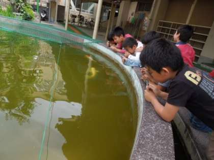 虫めがねで見ると・・・「おぉ!花に粉がついている。」「鯉の口がよく見える。」「ありの足が大きく見える」と違う世界に驚いていました。