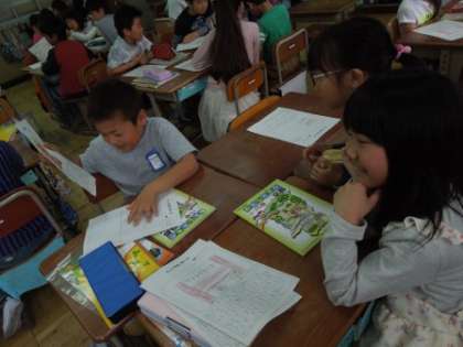 社会の時間には校区の自分のおすすめの場所を友だちに紹介しました。