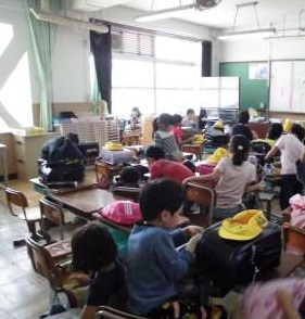 意識をせずとも英語のリズムを体で感じ,英語の歌を歌いながら帰りの用意をします。楽しみながら,隙間イングリッシュ!