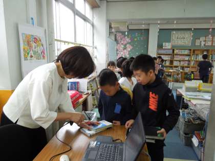 委員会の当番活動も4月第4週より始まりました。当番の児童も,やるきいっぱいでほんのもりにきてくれています。2年生以上の学年も,ほんのもりでの学習の最後には,本の返却・貸出をしています。授業中,本を借りる時は,読書領域を広げることを目指して0〜8類で1冊,9類で1冊と借りる目あてをもっています。
