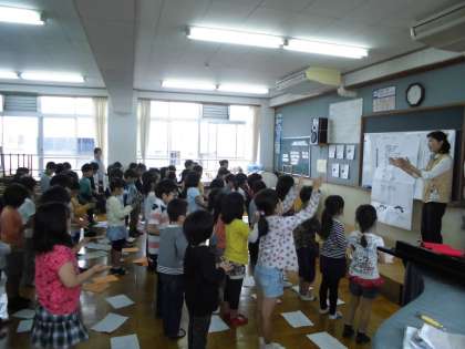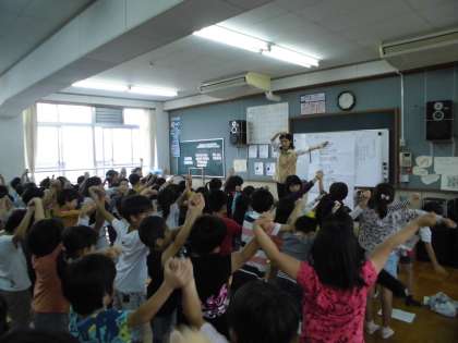 ふりをつけながら,大きな声で元気いっぱい歌っていました。