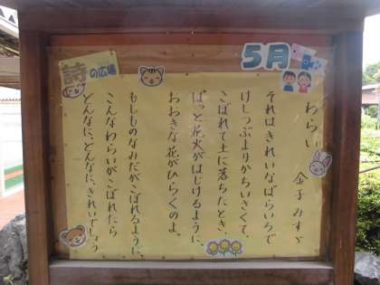 「わらい」という詩を金子みすずさんが作っています。小さなほほえみは,ぱっと心和ませて,一瞬にして場を優しくしてくれる力があります。