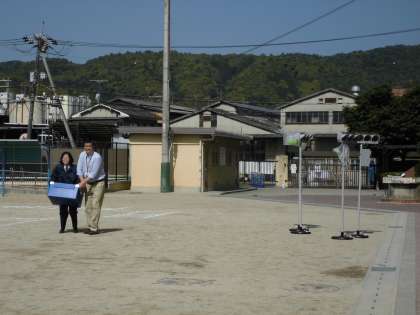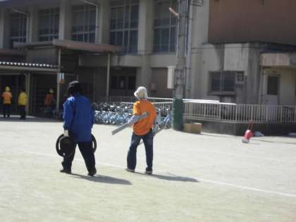 朝早くから,右京署と梅津交通安全推進会のみなさんが,運動場に仮設道路を作り,自転車安全教室に向けて準備をしてくださいました。