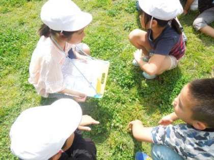 「この公園はよく遊ぶところだ」「ここのご飯やさんはおいしいよ」など,気づいたことや友だちに場所について教えてあげたりしながら探検をしました。
