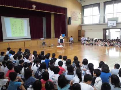 学年の代表の児童が,全校児童の前で発表しました。