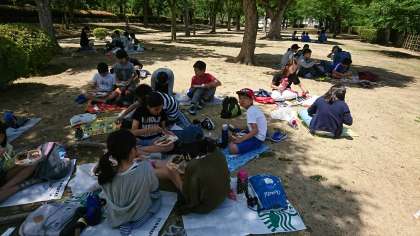 お天気が良いので,太陽の下で食べられました。