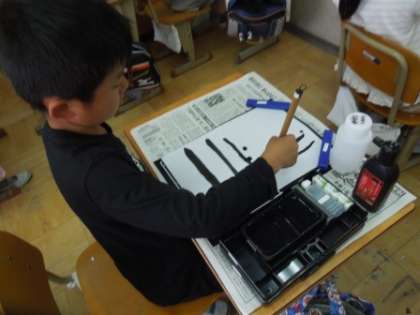 朝,自分の書写道具を嬉しそうに学校に持ってくる姿が見られ,とても楽しみにしていました。