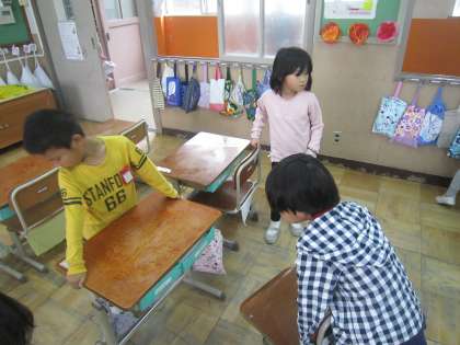 6年生に教えてもらいながら,1年生も自分たちの教室を一生懸命きれいにしています。役割分担をして,自分たちの仕事を時間めいっぱいがんばります。だんだんテキパキできるようになってきました。