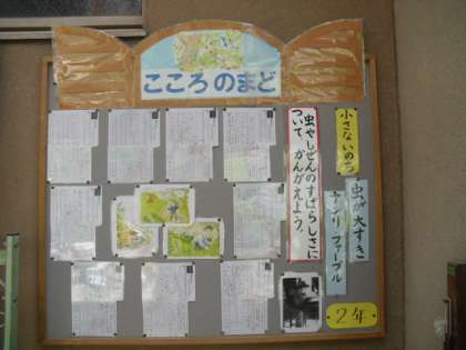 今月のこころのまどは,2年生の学習のあしあとを掲示しています。