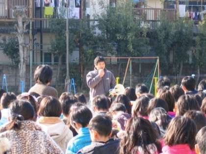 地震とそれに伴う火災の恐ろしさを知らせ,被害を最小限にとどめることの重要さを知り,正しい避難の仕方を身につけるのをねらって実施しました。校長先生から,「お・は・し・も・て」のお話と阪神淡路大震災のお話を聞きました。