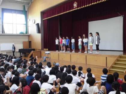 6月の集会では委員会活動の委員長紹介がありました。1週間前から紹介する内容を考え,練習を重ねてきました。本番では,堂々と紹介しており,じーんと胸があつくなりました。6年生になって2か月ですが,最高学年として日々成長している姿に感動しています。がんばれ6年生!!!