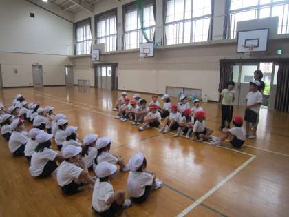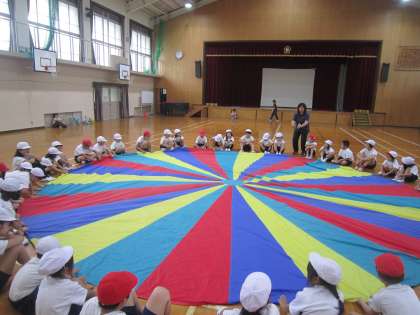 各クラスに別れて,むくのき学級さんと交流をしました。どんなお友達がいるのか,むくのき学級さんに自己紹介をしてもらい,みんなで体育をしました。バルーンではみんなの呼吸を合わせて,バルーンを使って「さんぽ」のリズムに合わせて体を動かしました。そのあとはペアになり,大きなカードを使ったカードめくりをしました。いろんな遊びを,楽しく,そして仲良くできてよかったですね。むくのき学級のお友達のことが知れる,素敵な時間となりました。